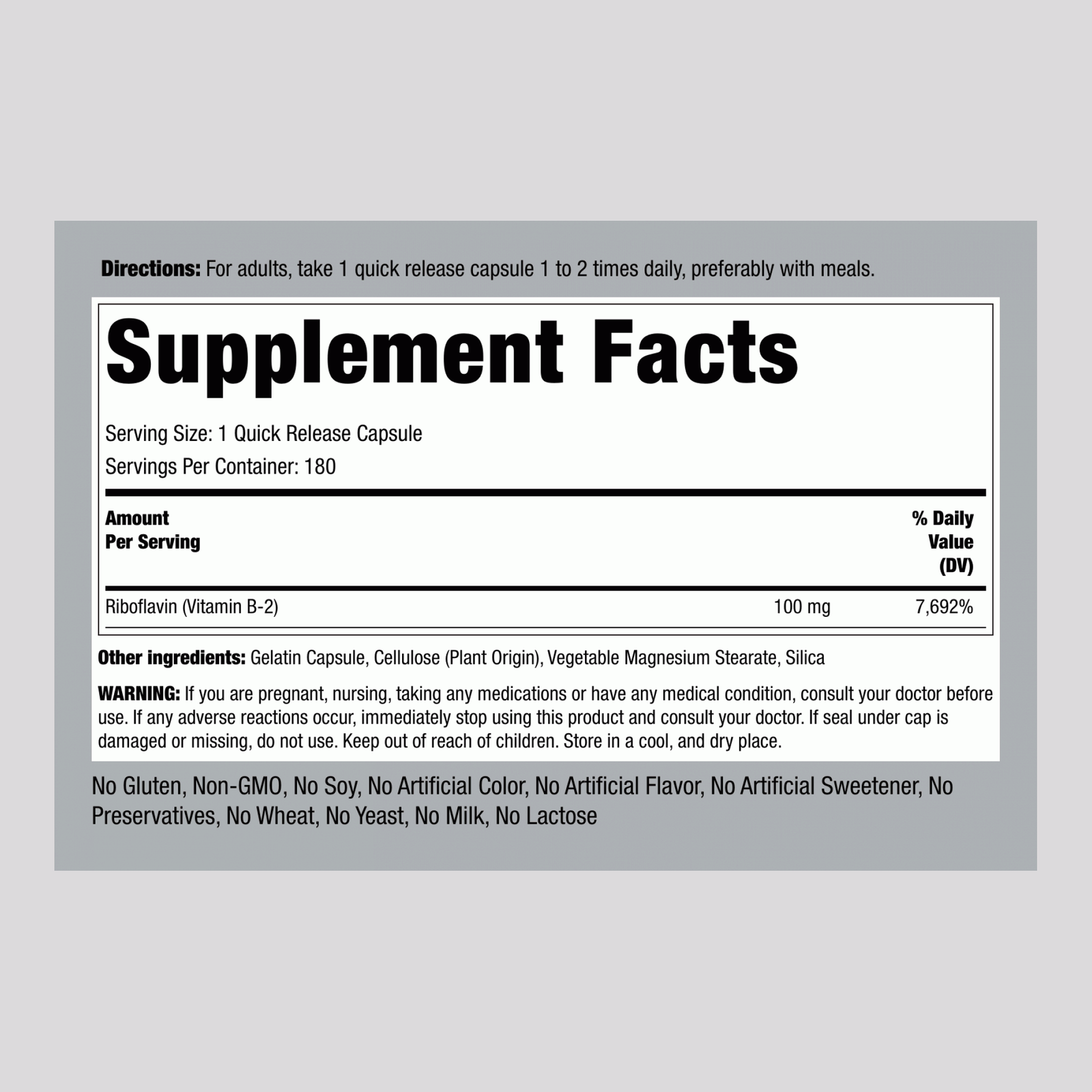 Nutrivya B-2 (Riboflavin): Your Essential Vitamin for Energy Production and Healthy Vision (100mg, 180 Quick Release Capsules)